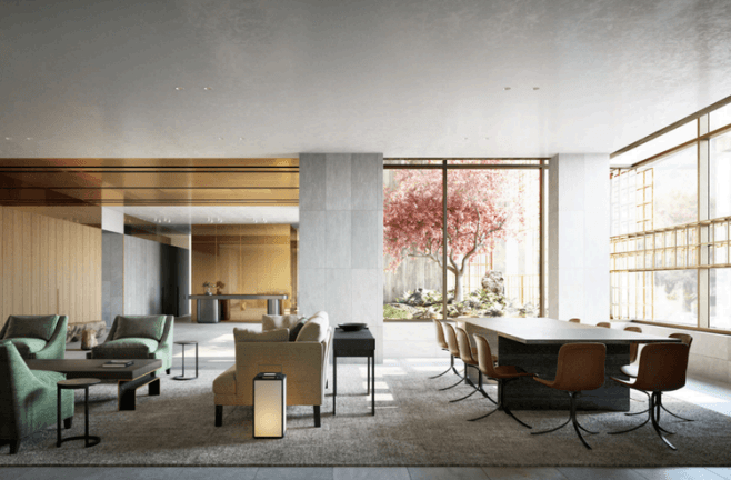 The design balances luxury and functionality, creating an atmosphere of comfort for modern urban living.