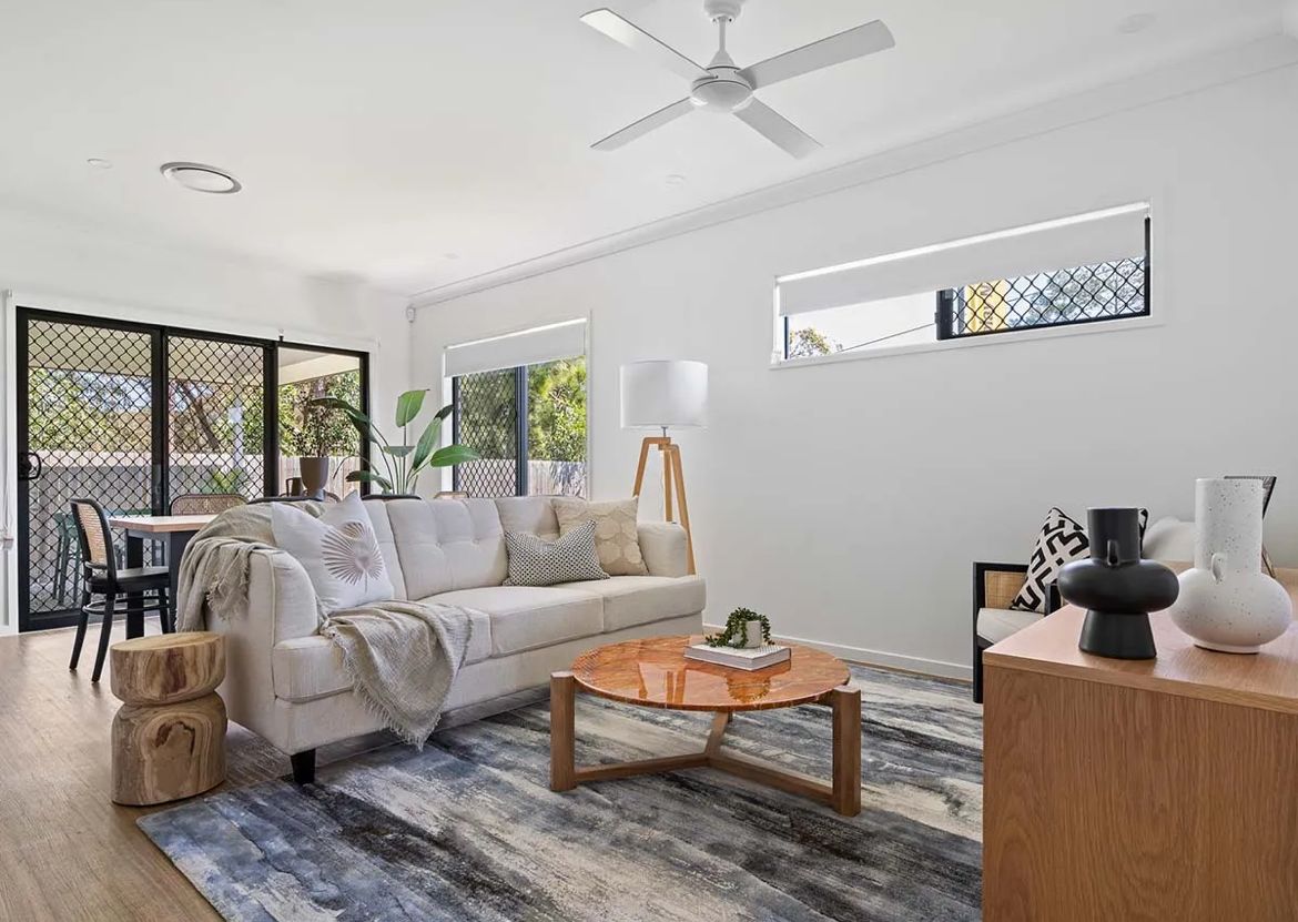Roller blinds, security screens, ceiling fans, decorative tiling, and full landscaping included.