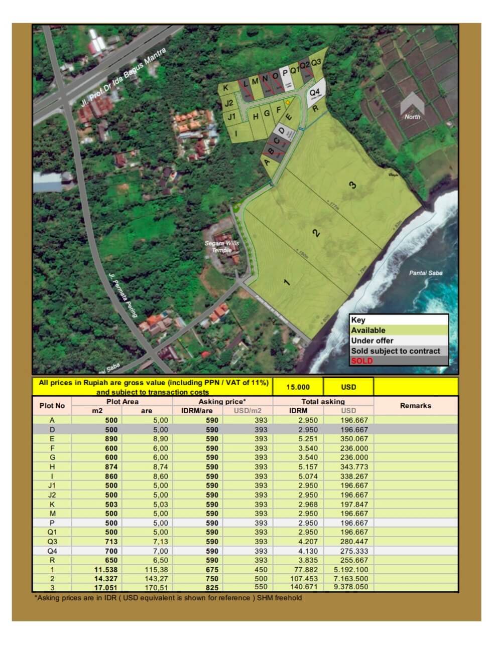 TANAH PANTAI SABA – PREMIUM BEACHFRONT LAND 143 ARE, GIANYAR BALI